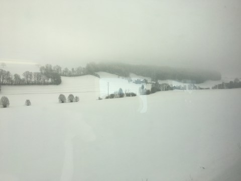 Cela a commencé lorsque la loco, quittant la Comté s’est enfoncée dans le silence immaculée d’une campagne façon meringue glacée. Peu de voyageurs dans le wagon. Chauffage, mouvement du train qui berce et musique calme dans les écouteurs. On glisse dans un mode parallèle que même la correction d’un mémo n’arrive pas à troubler.